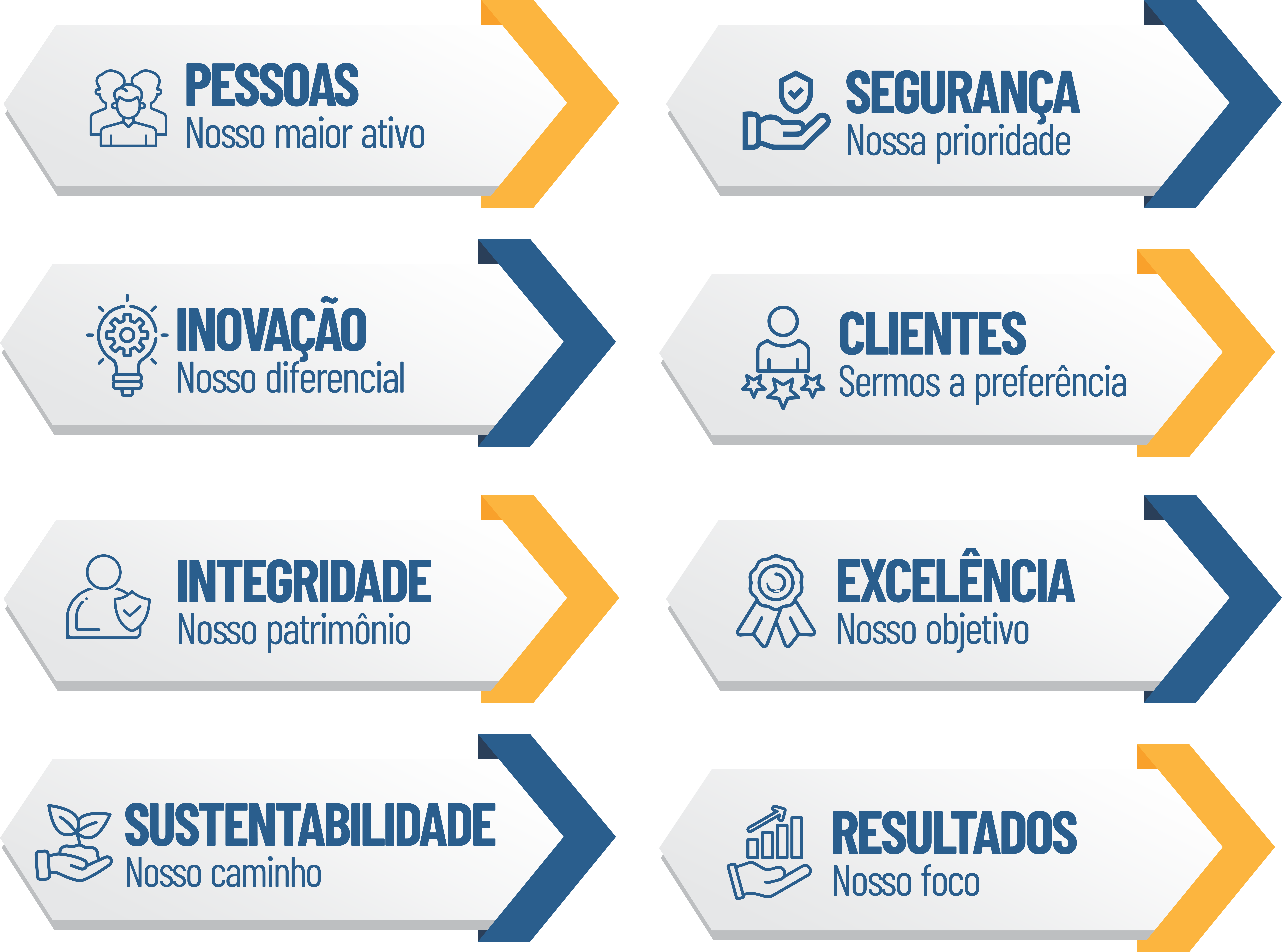 Atuamos com um rígido programa de segurança, qualidade e produtividade, buscando parcerias de negócios de longo prazo.